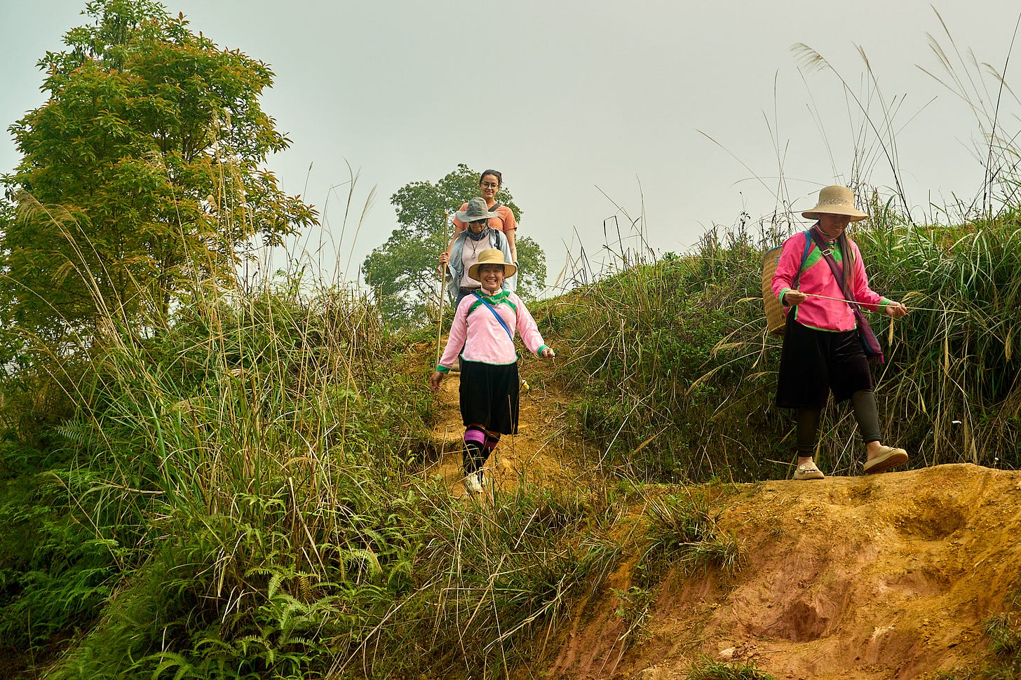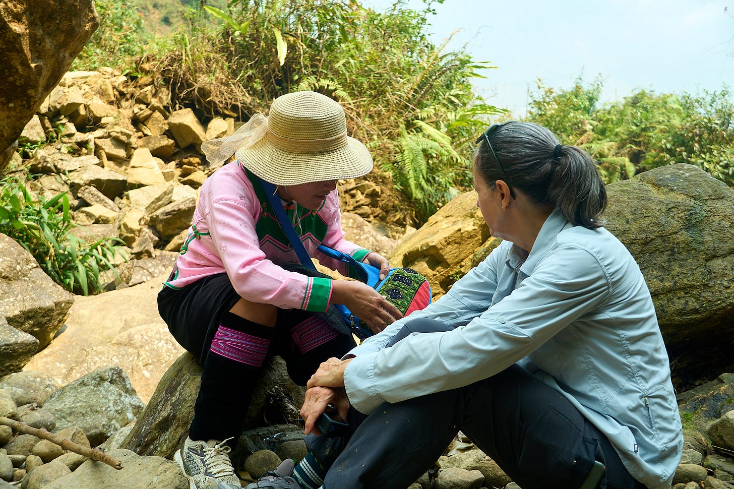It was she who said walking is her main form of transportation. It’s also how she earns a living as a Hmong trekking guide, taking visitors from around the world hiking through the mountains of her region for day hikes or multi-day hikes. For me, the image of a hiking guide is one with hiking pants, a technical sun shirt, trekking poles, sunglasses, a GPS, a hydration backpack full of carabiners and supplies, and a pair of hiking boots. This lady had none of that.