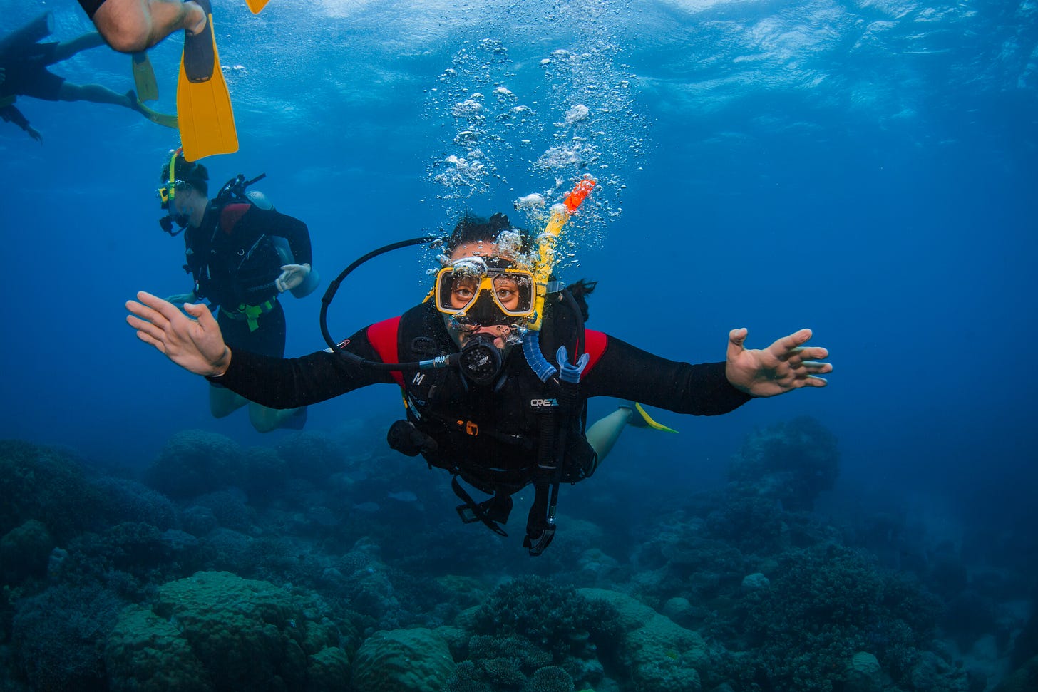 Because our bodies and minds are not used to breathing underwater, our instinct is to hold our breath. But that’s the most dangerous thing because the pressure can crush our lungs if we don’t use them. While it may feel strange, the most important thing once we hit the water is to remember to breathe.