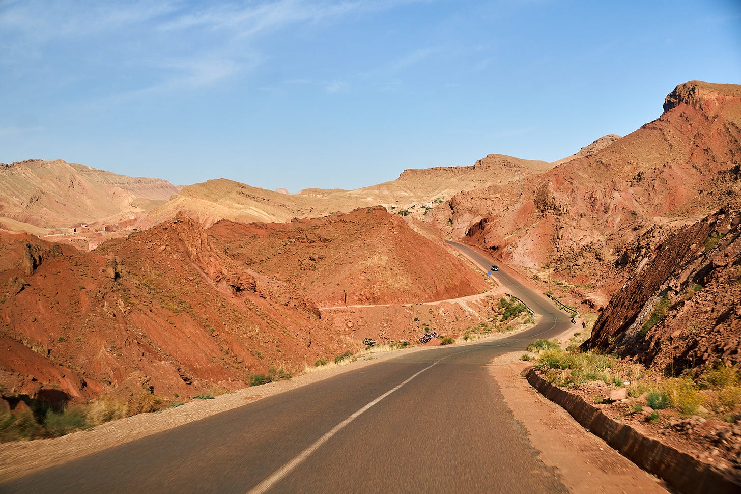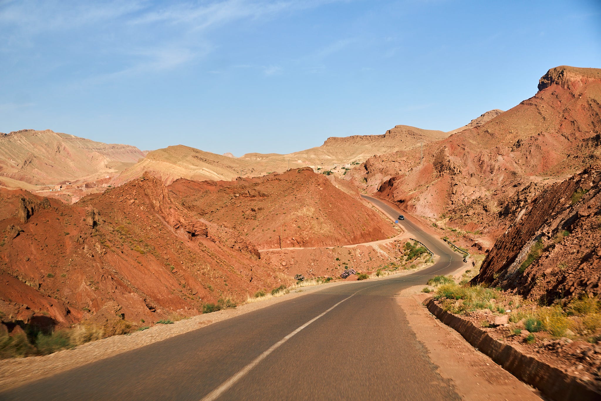 Just when we were getting used to Marrakesh, it was time for the journey to the Sahara. This is where things got strange. We were crammed into a bus with other travelers and the driver didn’t speak to us at all. Luckily we snagged the seats in the front next to the driver so we got air conditioning and views for all 9 hours of the drive.